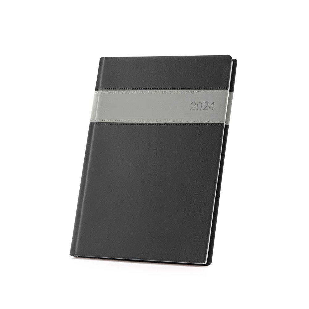 Agenda B5 em PU com marcador em fita. Está organizada num plano semanal. 175 x 245 mm