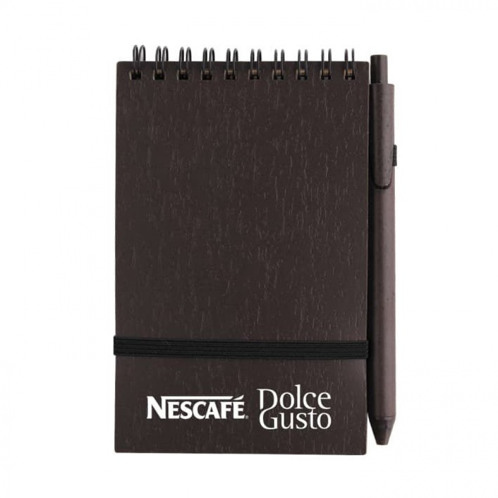 Bloco de anotações 14 x 9cm, capa em PP (polipropileno) e café com wire-o;