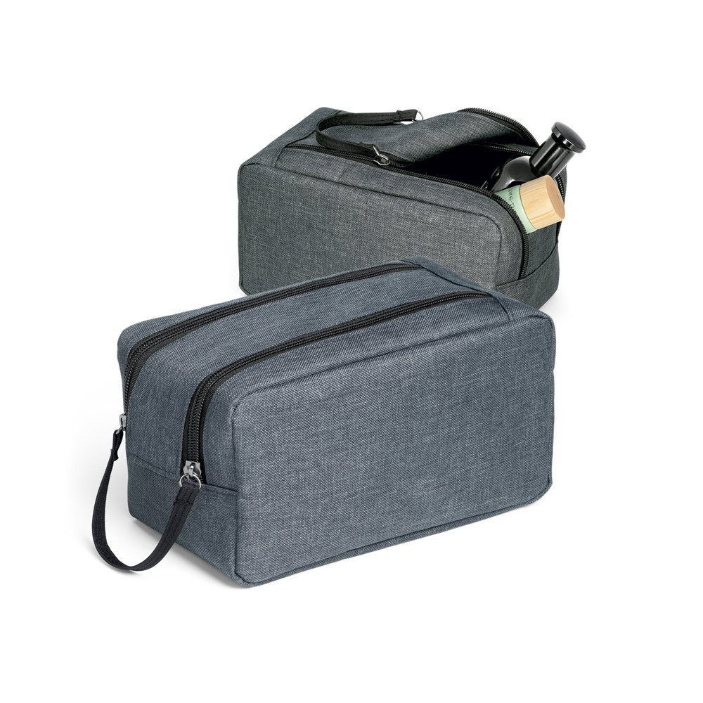 Bolsa de cosméticos em 600D de alta densidade com pega e interior forrado. 220 x 110 x 110 mm