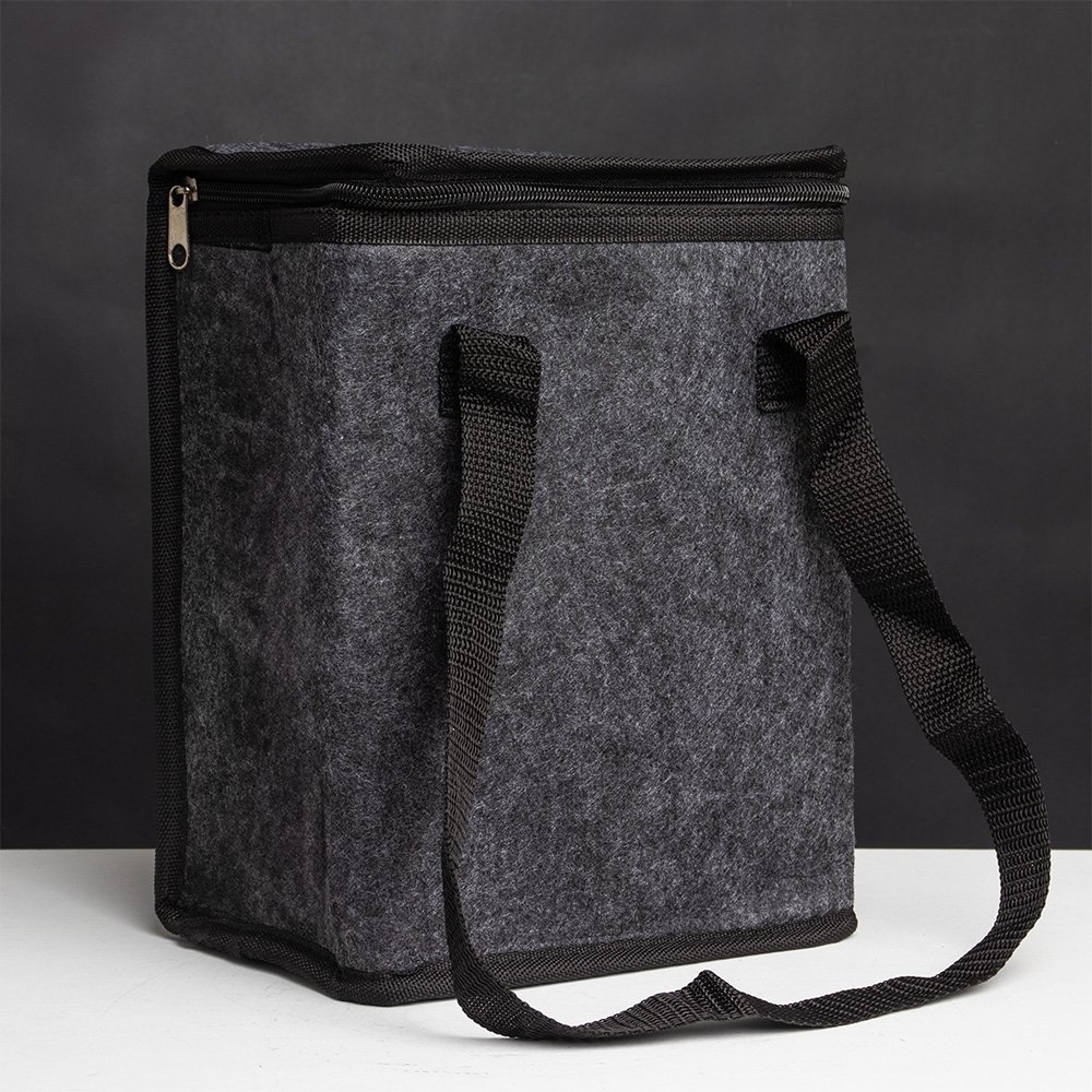 Descrição: Confeccionada em feltro e com revestimento térmico interno, nossa bolsa térmica foi pensada para garantir a temperatura ideal dos alimentos, mantendo-os frescos e prontos para o consumo. Seu zíper facilita o fechamento e a segurança do conteúdo, enquanto as duas alças de mão proporcionam um transporte prático e confortável. Uma combinação de praticidade e eficiência para quem valoriza qualidade e cuidado com os produtos.