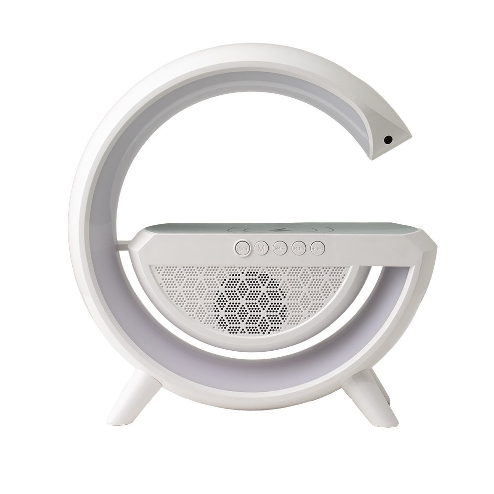 Descrição: Caixa de som com carregador por indução e luminária. Possui 6 modos de iluminação, opera nos modos bluetooth, rádio FM, auxiliar P2, USB e TF (cartão MicroSD). Para desfrutar do carregamento por indução (sem fio) é fundamental que o celular possua a tecnologia QI, o produto só armazena bateria para funcionamento próprio, para funcionar a indução precisa estar conectado a uma fonte de energia.