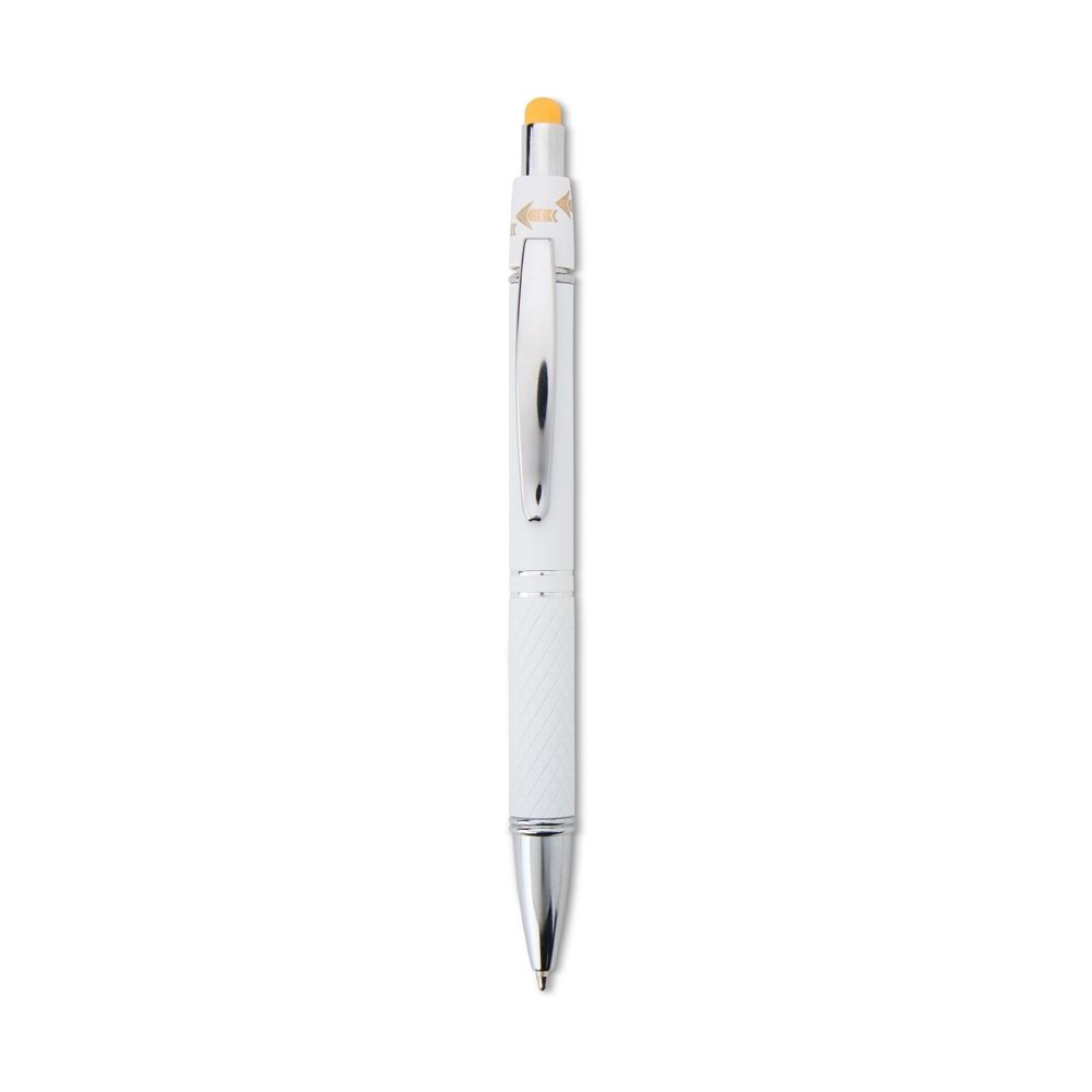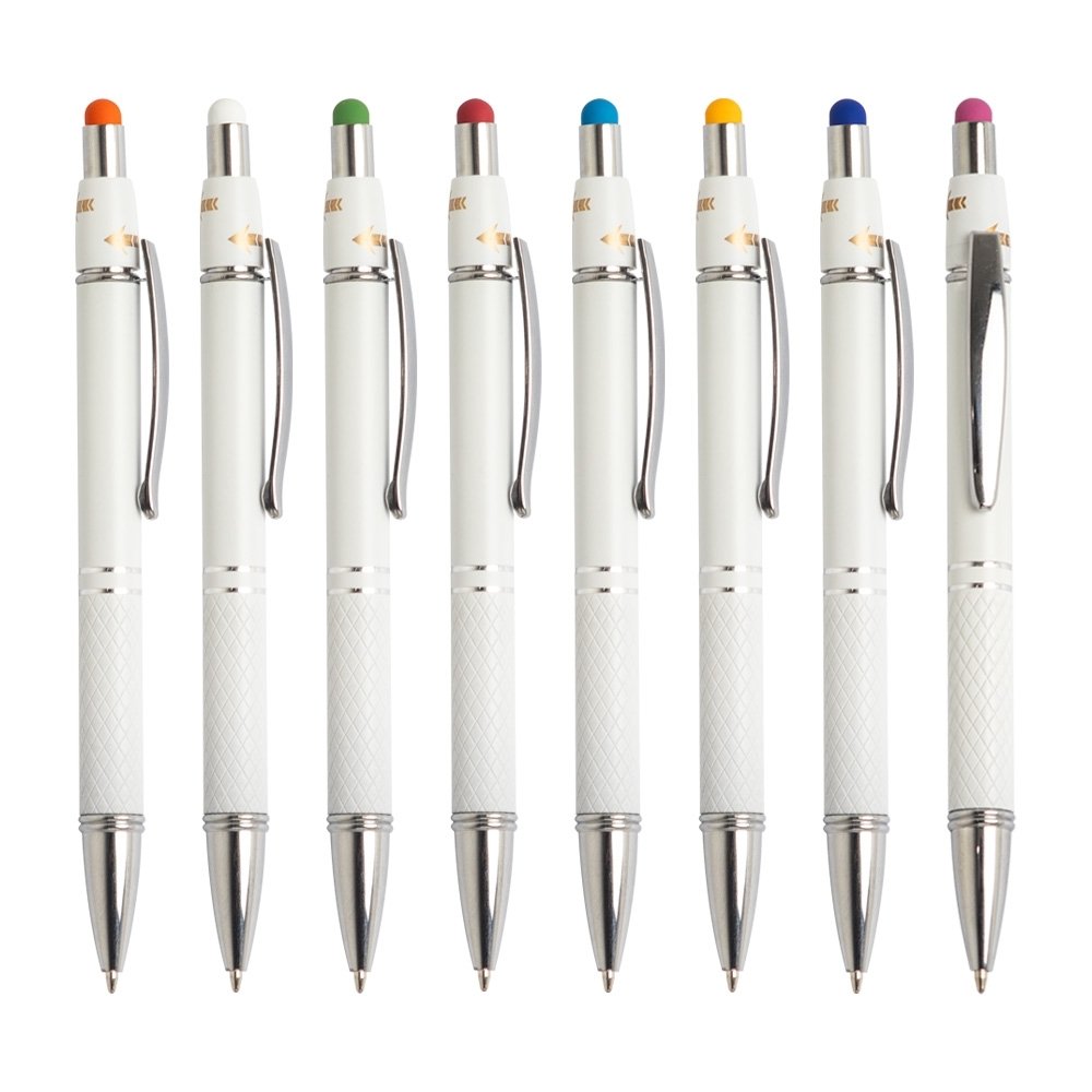 Descrição: Agora temos mais um aliado para combater o estresse! Apresentamos a nossa caneta metálica touchscreen com acionamento por clique, carga esferográfica azul de 1,2mm, e que possui um dispositivo antiestresse que funciona como um spinner e ajuda a aliviar a tensão do dia a dia. Além de cuidar da alimentação, dormir Agora temos mais um aliado para combater o estresse! Apresentamos a nossa caneta metálica touchscreen com acionamento por clique, carga esferográfica azul de 1,2mm, e que possui um dispositivo antiestresse que funciona como um spinner e ajuda a aliviar a tensão do dia a dia. Agora, além de cuidar da alimentação, dormir bem, ter tempo para o lazer, você ainda vai se desestressar ao escrever.