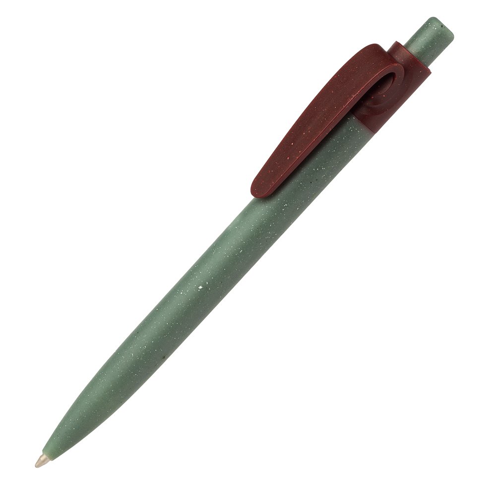 Caneta produzida com corpo de caixa de leite reciclada, detalhe em plástico PE.