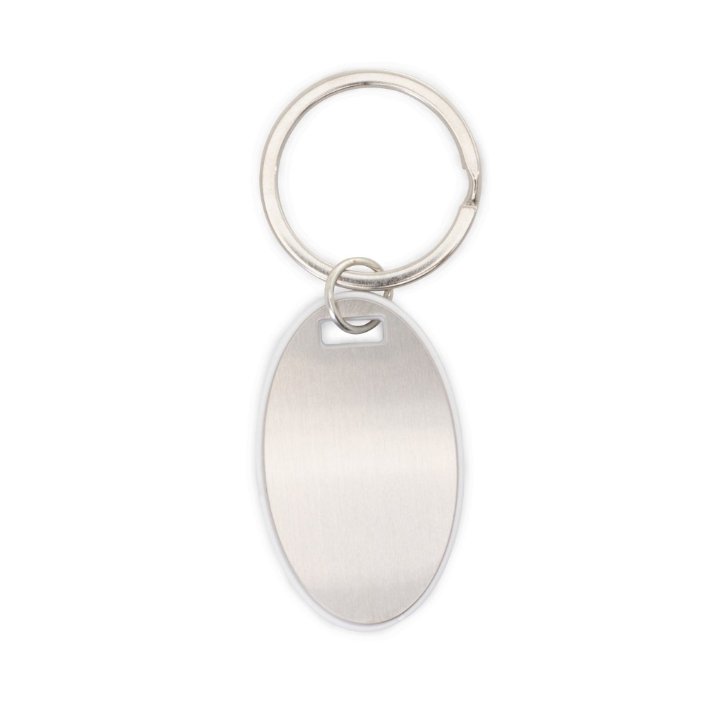 Chaveiro plástico com chapa metálica personalizável frente e verso.