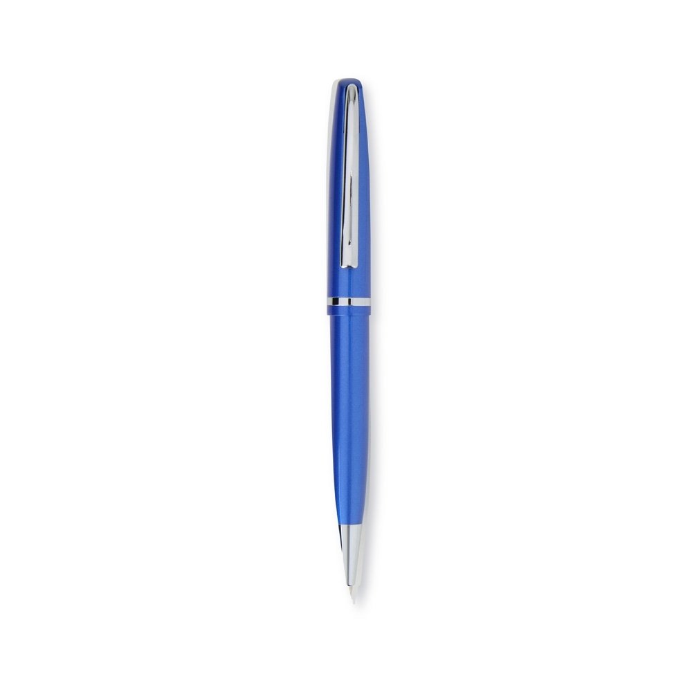 Descrição: Conjunto de caneta e lapiseira metálicas em estojo metal. Caneta e lapiseira possuem acabamento brilhante, carga esferográfica azul de 1.0mm e acionamento por rotação.