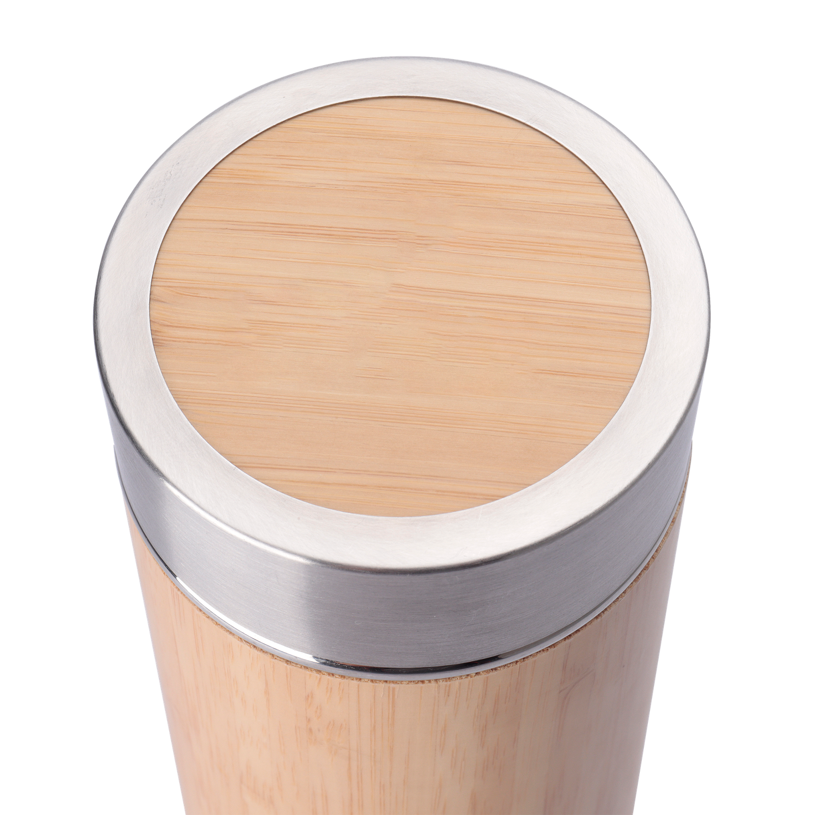 Garrafa térmica em aço inox com parede dupla isolada a vácuo com capacidade de até 400 ml. Com revestimento externo em fibra de bambu e infusor para chás. Tampa rosqueável e anel de silicone para vedação. Conserva líquido quente por até 12 horas e líquido frio até 18 horas.