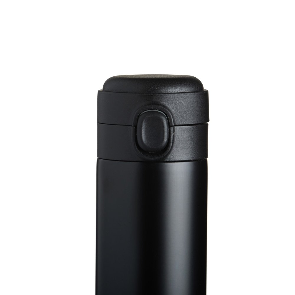 Descrição: Garrafa térmica em inox com parede dupla, capacidade de 410ml. Tampa com botão central para abertura e borracha interna para vedação.