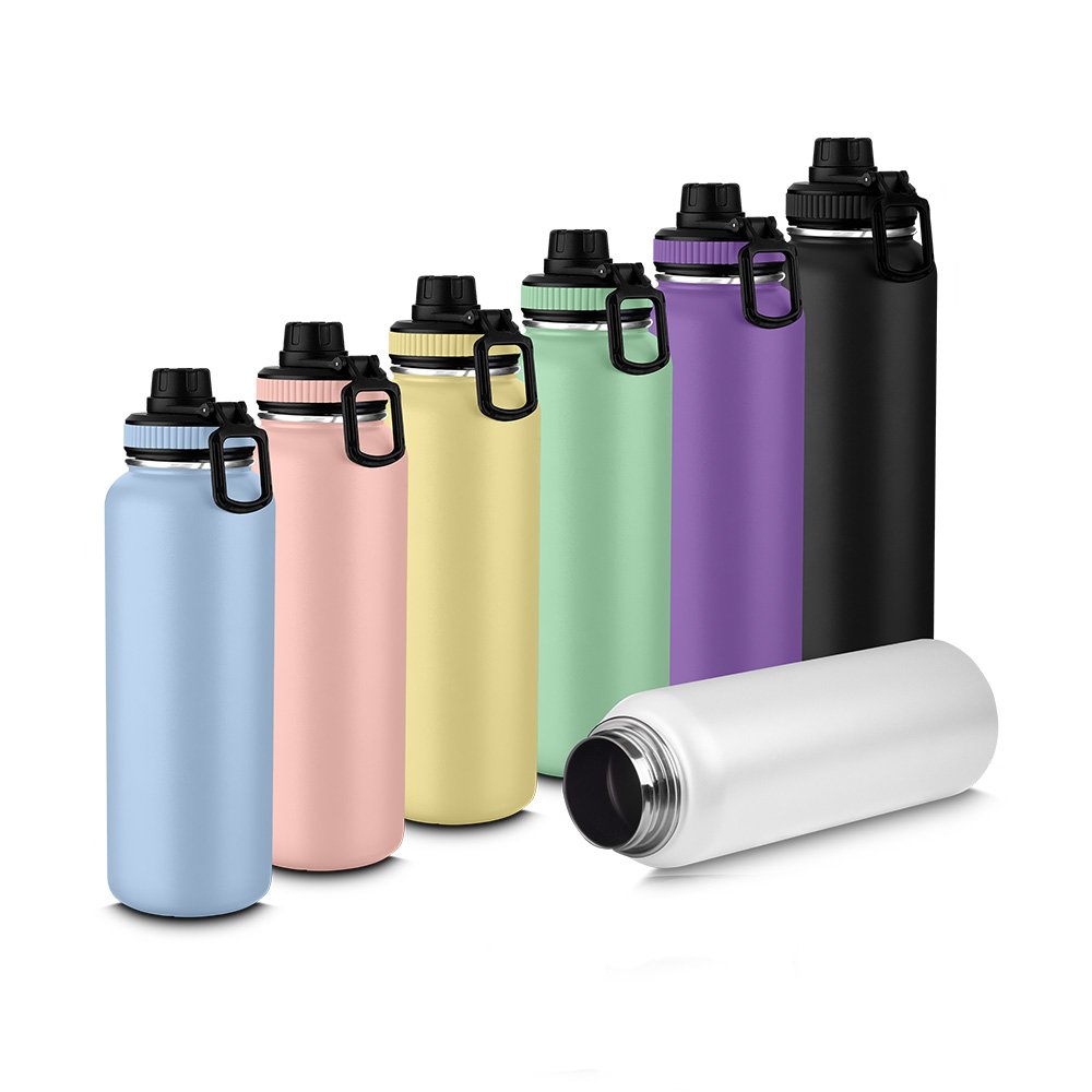 Garrafa térmica em aço inox com parede dupla isolada a vácuo,alça plástica para transporte, bico rosqueável para fácil acesso, com capacidade de 960ml.