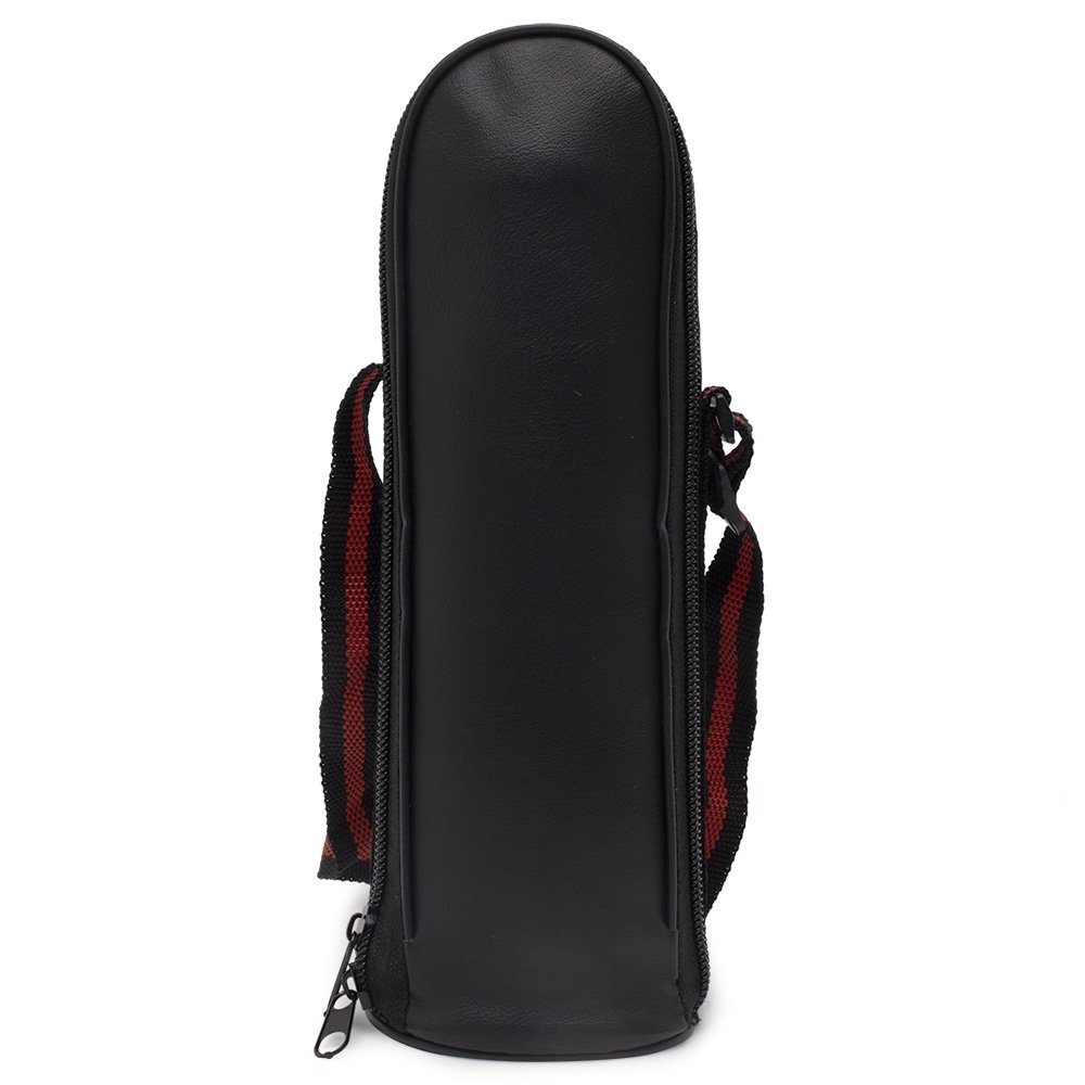 Descrição: Garrafa térmica 350ml em inox com tampa rosqueável, tampa interna em plástico resistente. Acompanha capa protetora de couro sintético com alça de nylon.