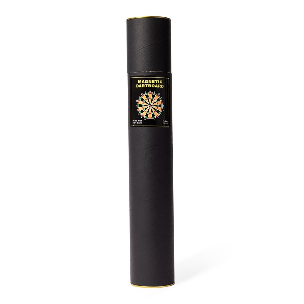 Descrição: Jogo de dardos composto por um alvo dobrável com dupla face em veludo e detalhes em plástico e nylon, além de seis dardos de pontas magnéticas e cabos em plástico. Acompanha tubo em papelão e metal para guardar os itens do conjunto.