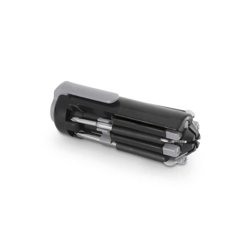 Conjunto de ferramentas em ABS com clipe, 4 LEDs e 5 pontas diferentes removíveis. Incluso 2 pilhas AAA. 90 x 30 x 35 mm
