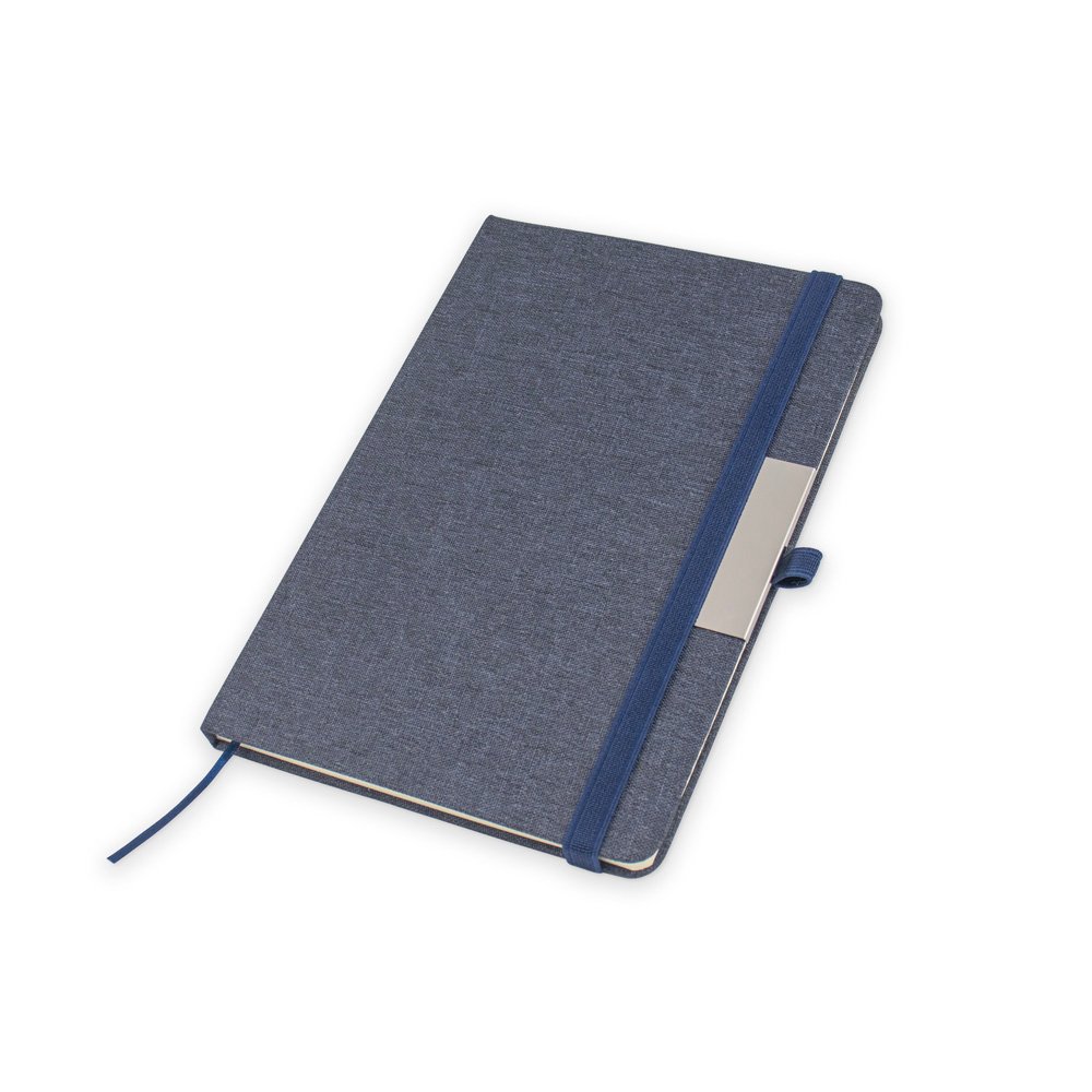 O caderno de anotações é feito de PET Reciclado, em capa dura com miolo 80 folhas pautadas.