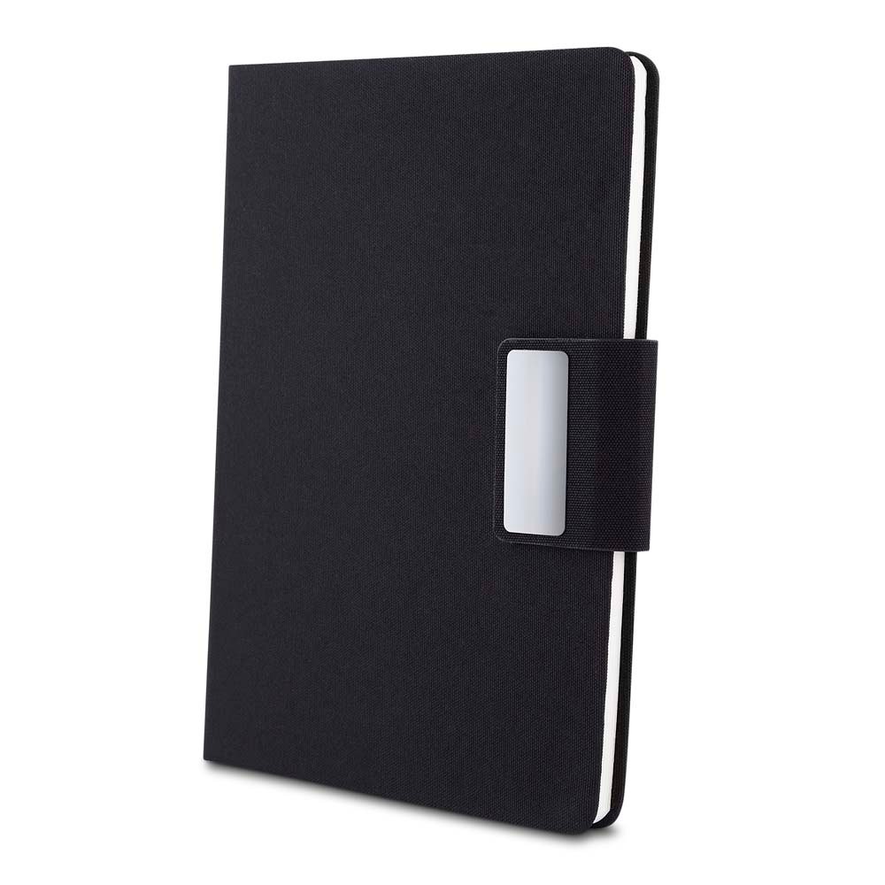 Conjunto composto por caderno em material RPET com fechamento magnético, com 100 páginas, caneta modelo twist com detalhe em tecido RPET preto e garrafa de parede dupla em inox (304 interno e 201 externo), com capacidade de 550ml. Acompanha caixa presenteável.