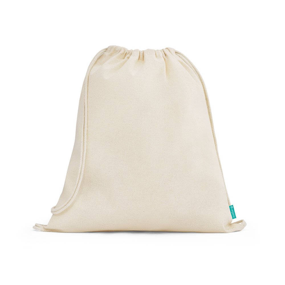 Saco tipo mochila 100% algodão orgânico (120 g/m²). 370 x 410 mm