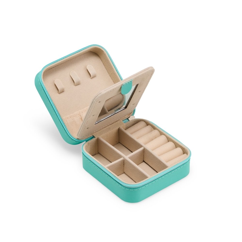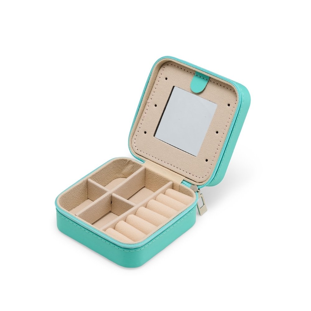 Descrição: Organize anéis, brincos, colares, outros acessórios e o que mais quiser no nosso porta-joias de couro sintético com espelho. Suas divisórias são bem marcadas e cabem diversos itens, o espelho além de permitir dar aquela olhada no visual, também funciona como uma divisória entre o compartimento superior e inferior interno. Uma surpresa em espaço compacto!
