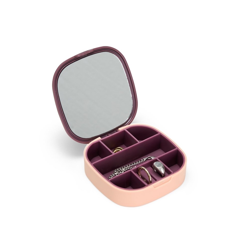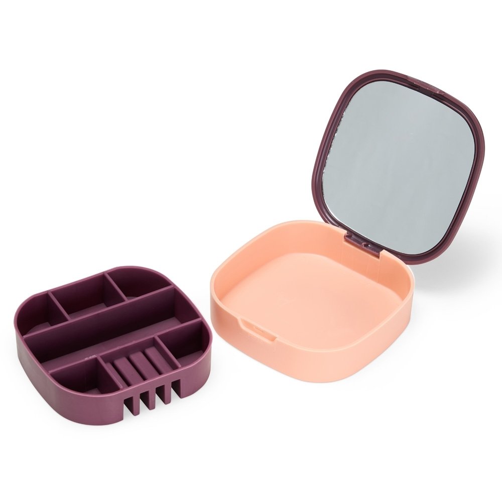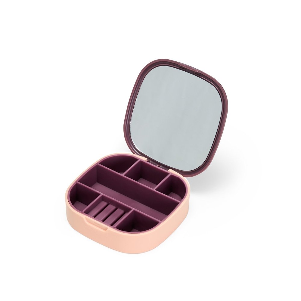 Descrição: Nosso Porta-jóias organiza seus acessórios de forma prática e compacta. Produzido em plástico, é a escolha ideal para manter anéis, brincos, batom e pulseiras sempre acessíveis. Com 7 compartimentos estratégicos para guardar tudo, feitos em material macio e emborrachado, removíveis para facilitar a limpeza, ele também conta com um espelho na tampa, facilitando na hora de montar looks com as jóias. Perfeito para quem valoriza organização, autocuidado e praticidade no dia a dia.