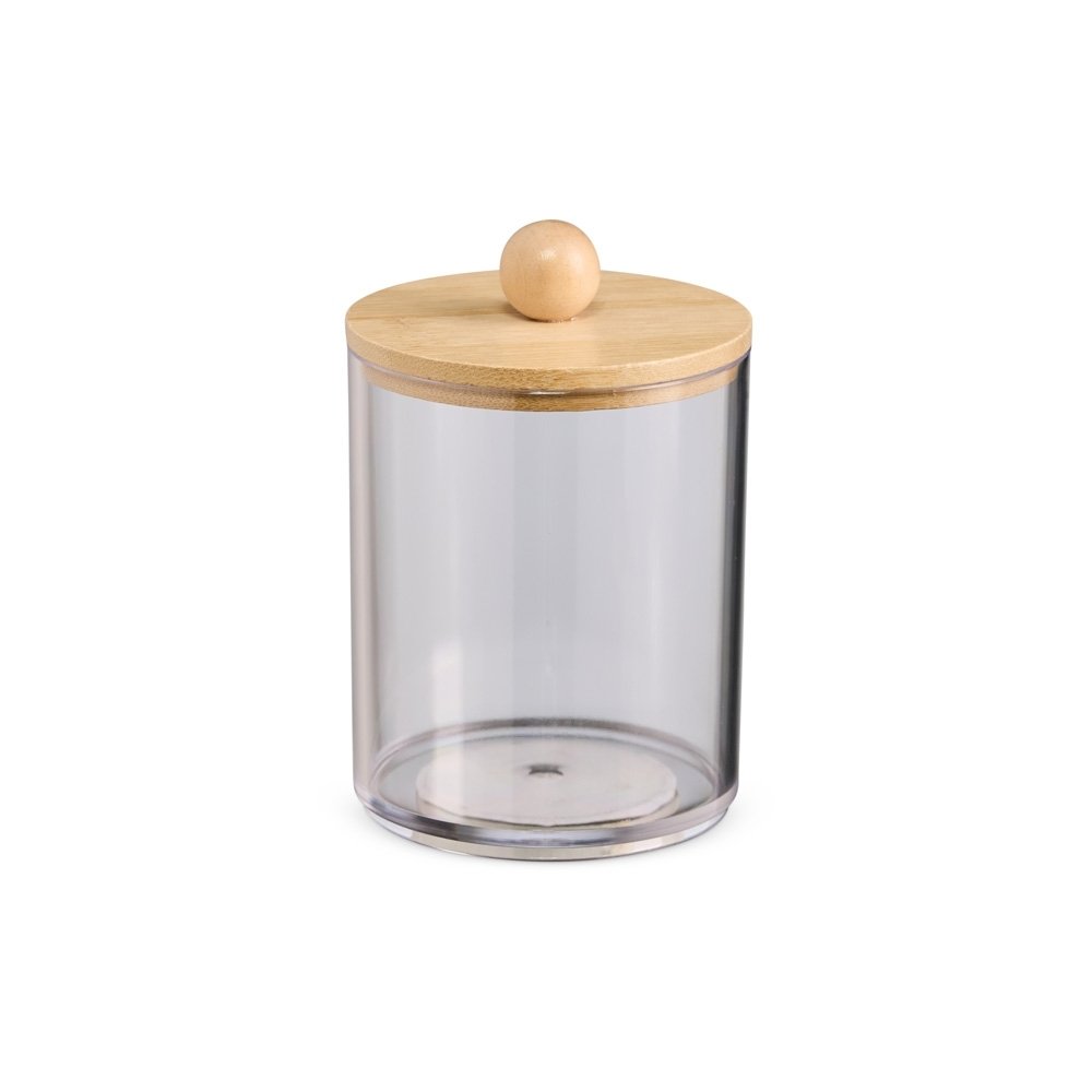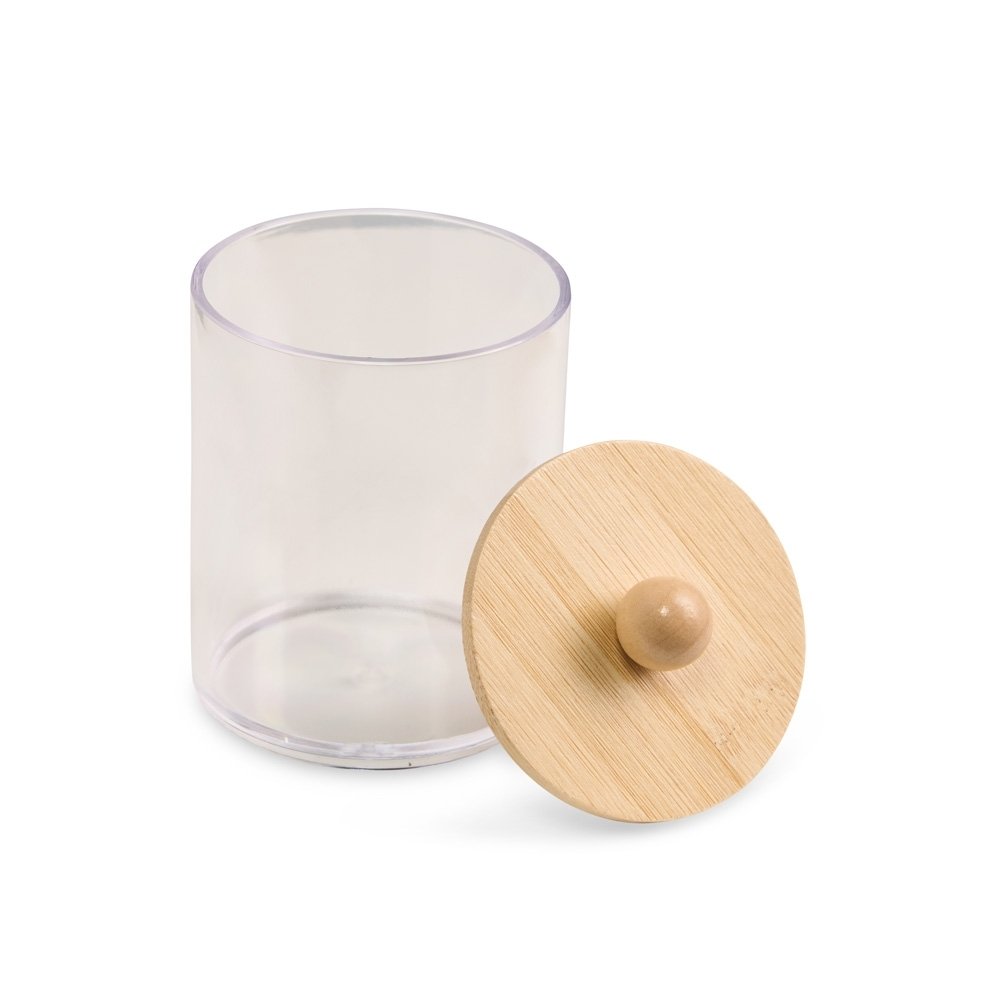 Descrição: Porta objetos em acrílico com tampa de bambu.