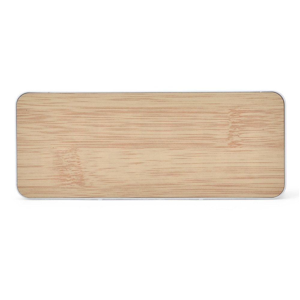 Descrição: Este relógio despertador de bambu e plástico com painel de LED faz a elegante união entre tecnologia aplicada ao design requintado tornar-se realidade em um único aparelho. Através dele é possível visualizar a hora certa e outras informações, como data e temperatura ambiente. Apresenta opção de programação de alarme, oferecendo a possibilidade de ajustar a frequência sonora e dos dias de acionamento, tornando-o um excelente aliado para planejar uma rotina. Também é possível selecionar, em até 3 níveis diferentes, a luminosidade das informações do display. Além disso, o relógio despertador pode ser ligado através de 1 pilha AAA (não acompanham o produto) ou via cabo USB DC de 5V que acompanha o dispositivo.