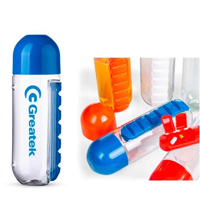 Squeeze: Com porta comprimidos em PP, com 7 divisórias. Capacidade: 740 ml. Food grade