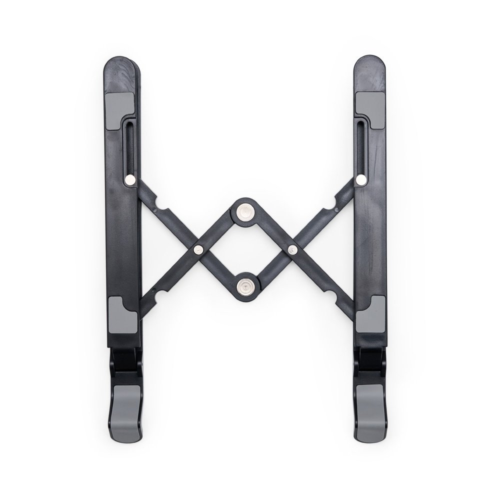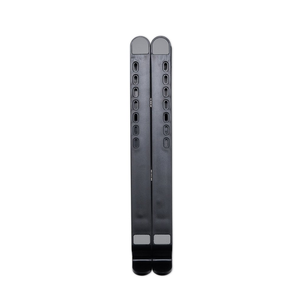 Descrição: Um suporte para notebook retrátil que combina com qualquer ambiente. Feito em plástico resistente, o suporte conta com até sete posições de ajustes para oferecer mais opções para apoiar notebooks de até 15,6 polegadas, tudo isso sem abrir mão da ergonomia e elegância, essenciais para um bom desempenho ou apresentação das mais variadas atividades. Ele também conta com tiras laterais em silicone para ajudar a manter o aparelho mais firme e, além disso, o formato do suporte contém um design aberto para facilitar a dissipação de calor do eletrônico sobre ele.