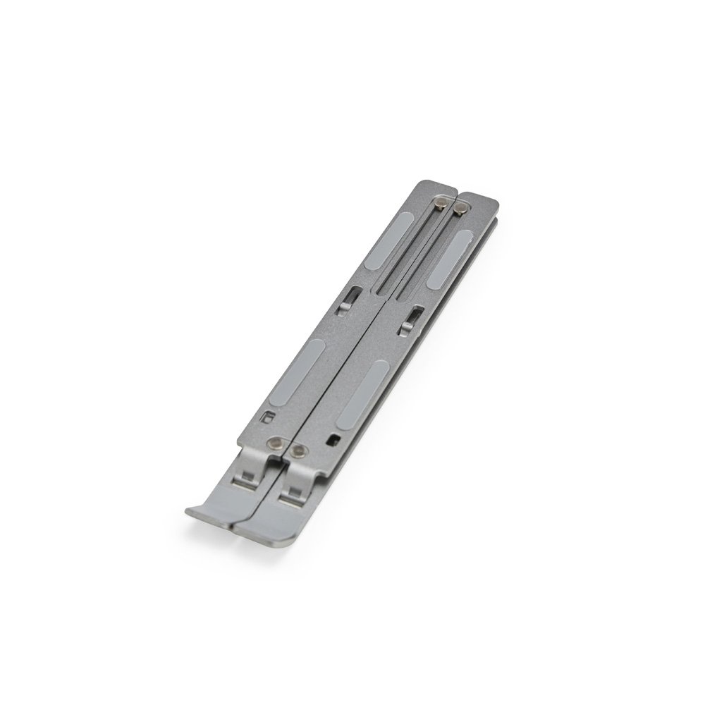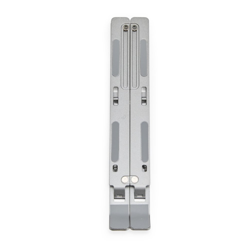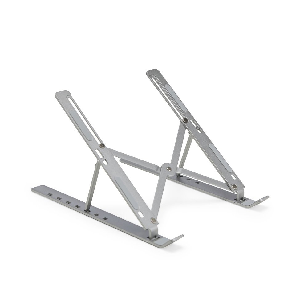 Descrição: Um suporte retrátil que é uma opção prática para acomodar notebooks de forma apropriada em qualquer ambiente, seja para estudos, trabalho ou apresentações. Feito em metal resistente, apresenta até sete níveis de ajuste para oferecer ergonomia e elegância para apoiar notebooks de até 15,6 polegadas. Além disso, também conta com tiras de silicone distribuídas por sua lateral para ajudar a manter o aparelho mais firme e, além disso, o formato do suporte contém um design aberto para facilitar a dissipação de calor do eletrônico sobre ele.