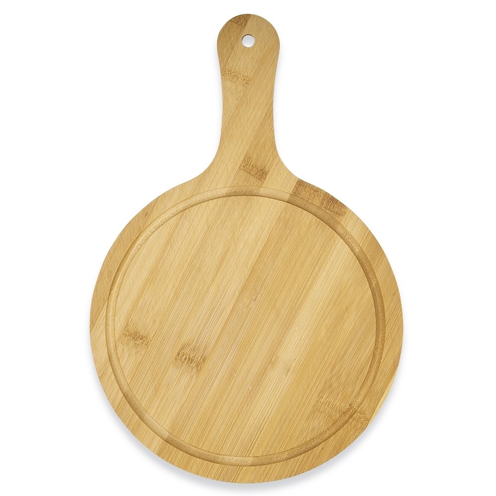 Descrição: Tábua de bambu média com canaleta e cabo.