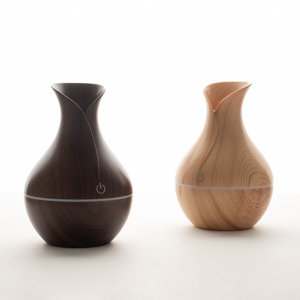 Descrição: Umidificador com led de 7 cores com exibição alternada. Produzido em plástico estilizado em madeira. Umidificador possui capacidade de até 150ml e funciona apenas a base de água. Acompanha filtro de algodão e um cabo USB. Obs.: A limpeza externa deve ser feita apenas com pano umedecido, caso submergir o produto o equipamento pode ser danificado.
